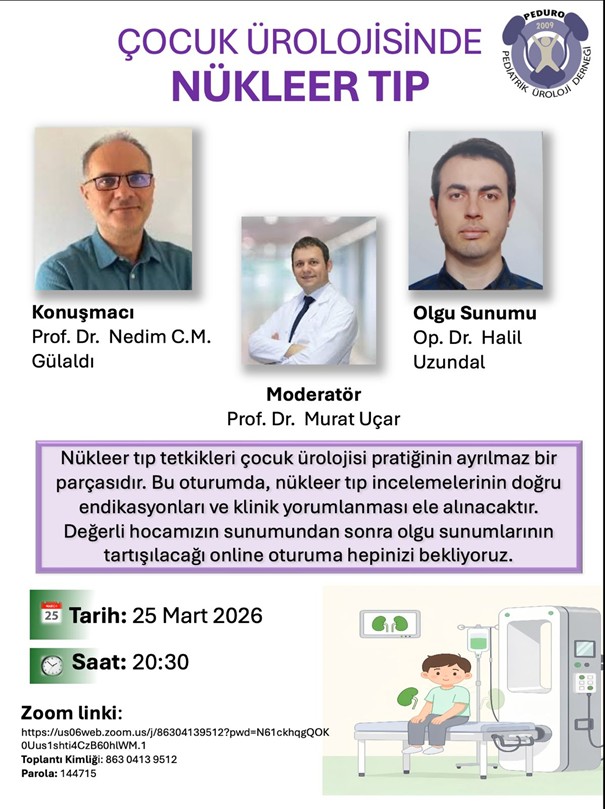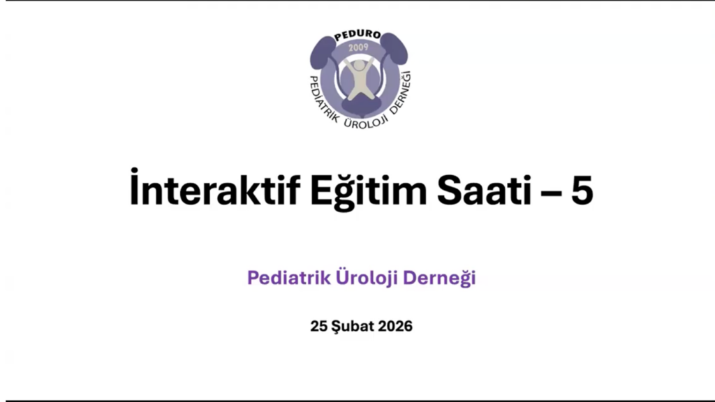 - 28 Ocak 2026 IES-4Pediatrik Üroloji Derneği olarak sizleri 28 Ocak 2026 Çarşamba günü yapılacak olan IES-4 oturumuna davet ediyoruz. Böbrek tümörlerine yaklaşımın tartışılacağı IES toplantımızın mentor hocası Prof. Dr. Nizamettin Kılıç olacaktır.